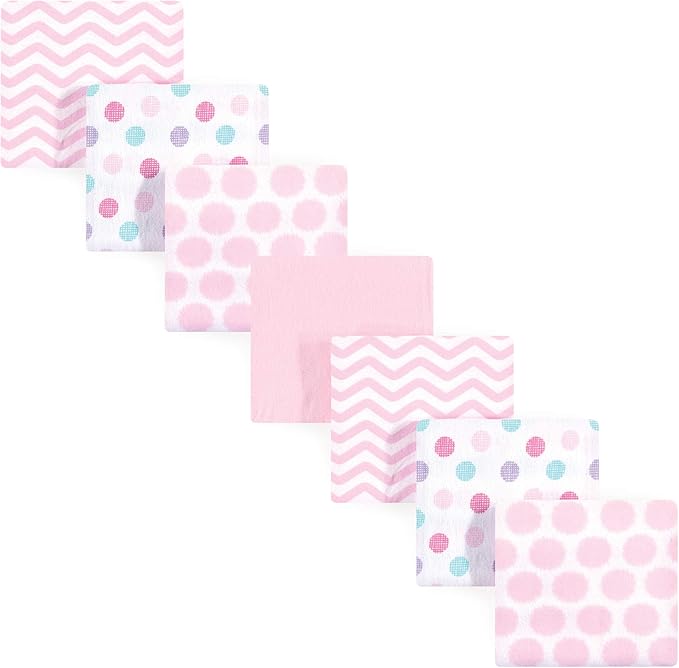 Luvable Friends Unisex Baby Cotton Flannel Receiving Blankets, Pink Dots 7-Pack, One Size