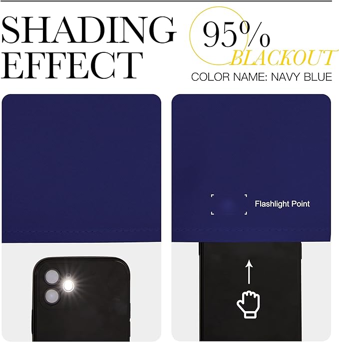 - READY MADE: Set includes 2 BLACKOUT CURTAINS PANELS of 42" wide x 63" length with 6 grommets top each, in color Navy Royal Blue. Quality fabric without liner feels soft and heavy.
