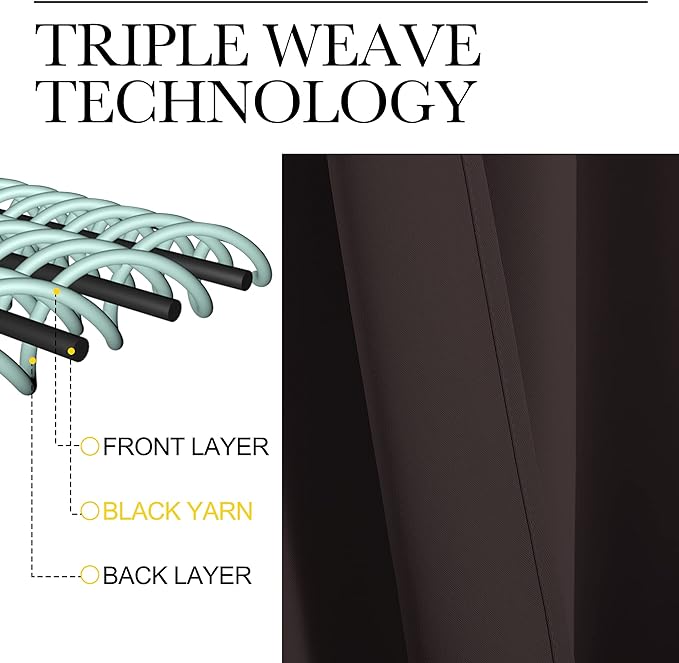 - SERVE WELL: Curtains impede 85%-99% light and UV rays(Dark color curtains work well). Noise-reducing, better TV viewing thanks to the innovative triple weave technology.