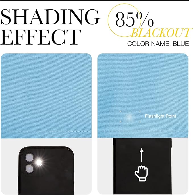 - 100% BLACKOUT: The real blackout curtains on the market. Sew in black liner backing makes the drapes thick enough to completely keep out the 100% SUNLIGHT and UV RAY. The greatest benefit is to offer you a real dark environment, bringing you a good night's sleep during the day.