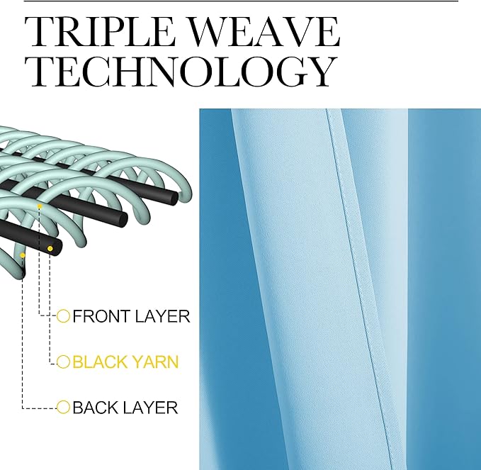 - UNIQUE DESIGN: Draperies constructed with 2 layers are all triple weave blackout fabric, balancing room temperature by insulating against summer HEAT and winter CHILL meanwhile protect PRIVACY. No chemical coating, no formaldehyde, ECO-friendly, bring harmonious to your family.