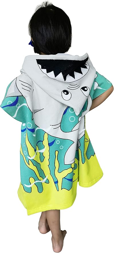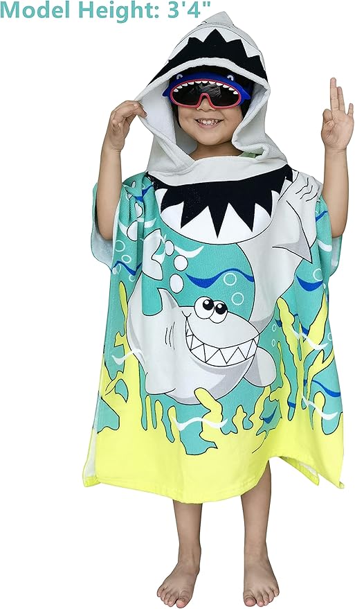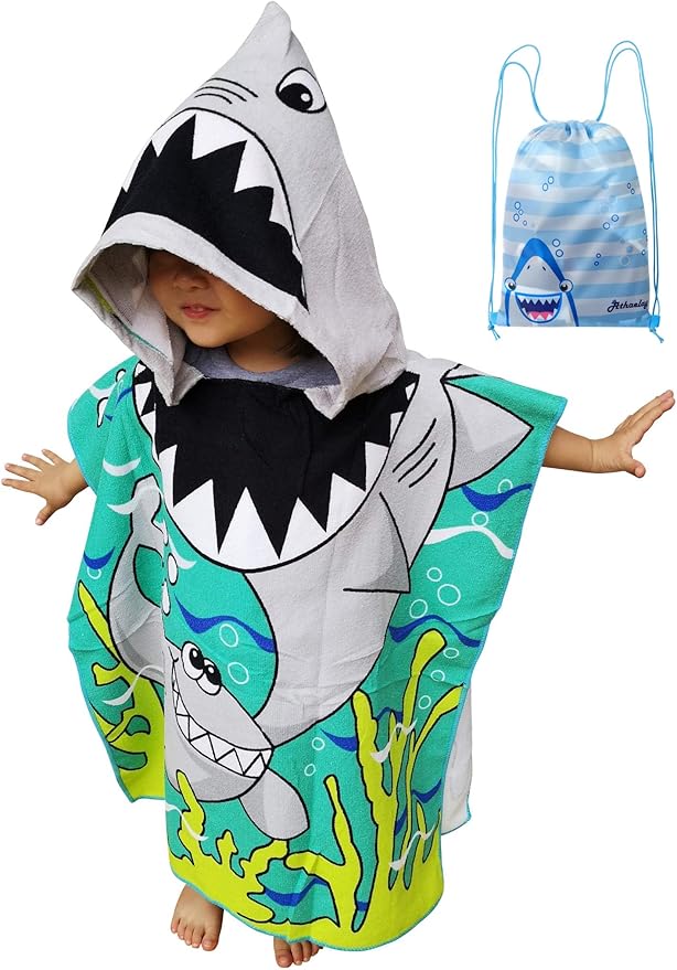 Wearable Towel for Kids Toddlers Bath Pool Beach Swim Poncho Cover-ups Swimwear for Little Boys Girls, Shark Theme with Bag