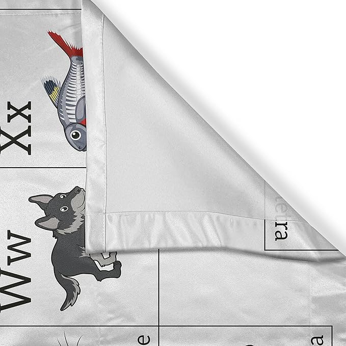 Ambesonne Educational Kitchen Curtains, Alphabet Learning Chart Cartoon Animals Names Letters Upper and Lowercase, Window Drapes 2 Panel Set for Kitchen Cafe Decor, 55" x 39", Black Brown