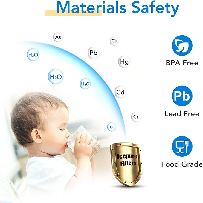 - Authoritative Certifications - Tested and certified against NSF/ANSI 42 to reduce 99.06% Chlorine. Reduce sand, sediments, particles, rust, color. Significantly improve the drinking water taste. The filter also meets European EC1935-2004 Regulations, and the Australian Water Mark, and has the certificatons of TUV, ROHS, REACH, and BPA FREE.