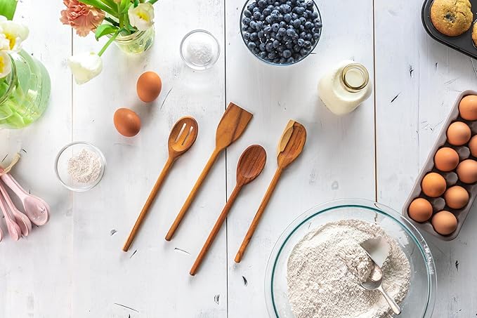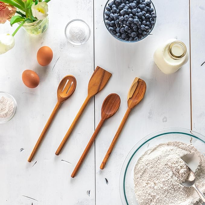 Lipper International Teak Wood Kitchen Tools for Cooking, 4-Piece Set, 11" Long