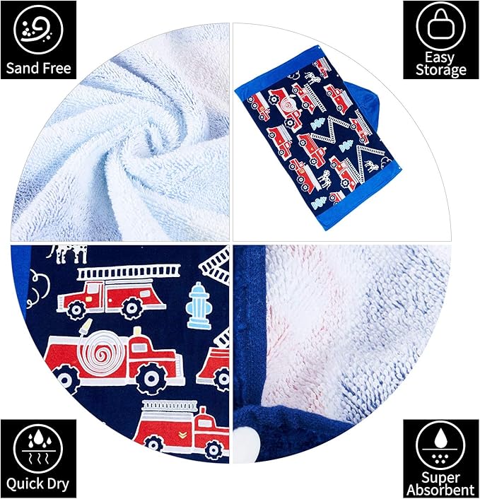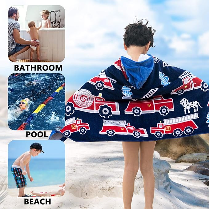 - 【Super Absorbent & Machine Washable】 The beach towel for kids is extremely absorbent. The cotton bath towel will quickly absorb the moisture on kid's body surface to keep him warm. Avoid kids getting sick from the water. Make sure kids enjoy fun and safety with our hooded towels for kids. Washing method: Machine washable and gentle cycle.