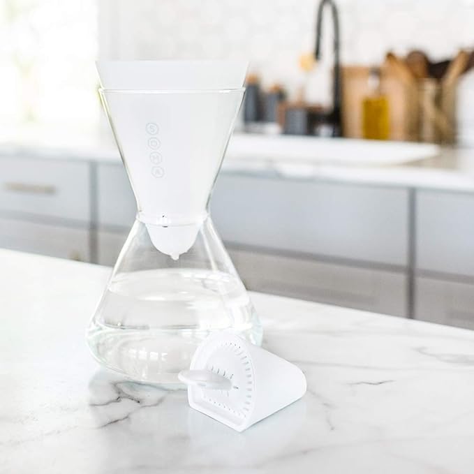 - The new lid design allows air to rise through the top and escape while water flows through the outer valley allowing for maximum flow and a more consistent flow rate (4-6 minutes per fill)
