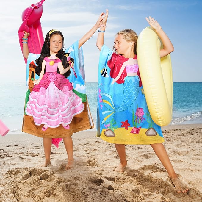 - ❤️ Adorable mermaid cartoon pattern provide your kids' bath time and beach time great comfy and fun, a great gift for your kids