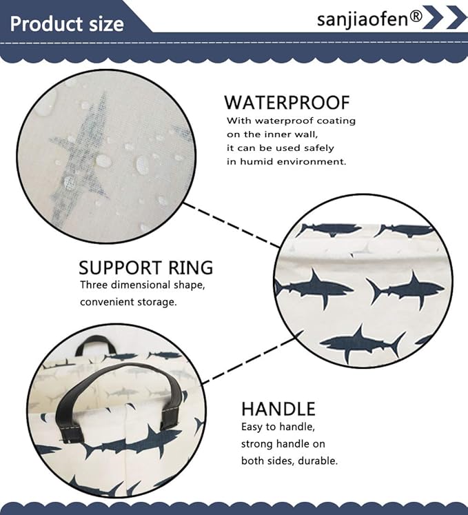 - 【APPLICATION】It's a perfect addition to a nursery,kid's room.shark decor for boys room,baby hamper. home office, craft room, or use as a laundry hamper, Great for a kids room, playroom, craft room, bathroom, kitchen and closet organization to store clothes,kid's toy,sundries.,etc