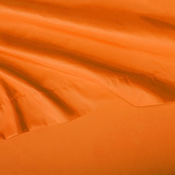 - Twin-size set in Bright Orange includes a 66 x 96-inch flat sheet, 38 x 74 x 14-inch fitted sheet, and a 20 x 30-inch pillowcase