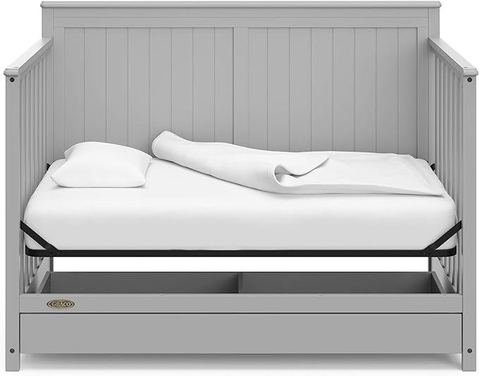Graco Hadley 5-in-1 Convertible Crib with Drawer (Pebble Gray) – GREENGUARD Gold Certified, Crib with Drawer Combo, Full-Size Nursery Storage Drawer, Converts to Toddler Bed, Daybed
