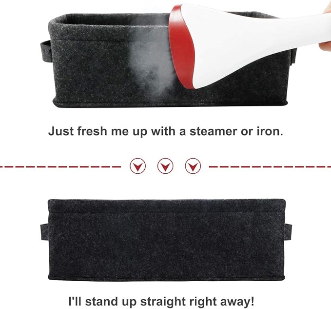 - Felt Handles and Stylish Storage: The strengthen felt handles on both sides for easy slide in and pull out of shelves or closet.Feel free to fold. These soft storage organizers keep closet and bedroom clutter under control while keeping clothing and other accessories in an easily accessible location.