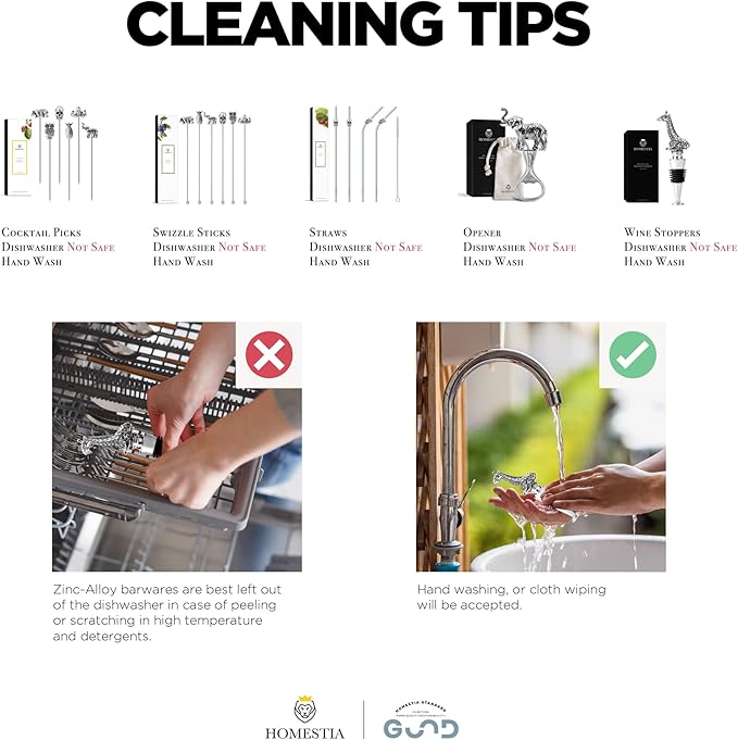 - PREMIUM MATERIALS: The fancy wine toppers stoppers are made up of zinc-alloy decor top, 304(18/8) stainless steel bottom stand, and BPA-free silicone sealing piston. We upgraded the silicone part in contact with alcohol to premium food-grade level, silicone bottle stoppers are more healthy, plus corrosion-resistant, rustproof and solid for a lifetime. HAND WASH, NOT DISHWASHER SAFE.