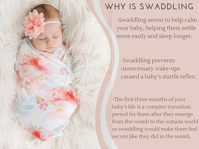 Baby Receiving Blanket Swaddle Blanket Newborn Wrap Swaddle Headband Set -Bloom Flower Pattern