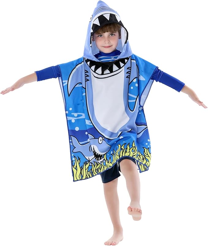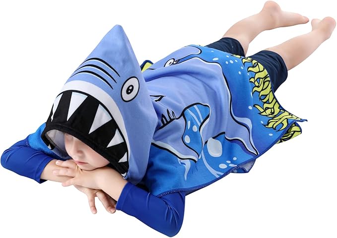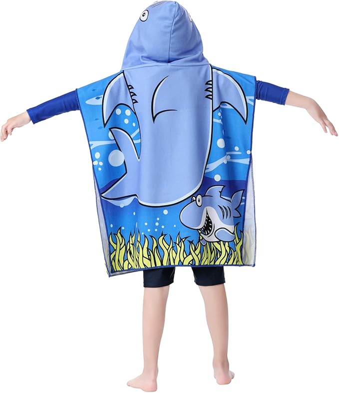 Soft Hooded Beach Towel for Kids, Toddlers Bath/Pool/Swim Poncho Cover-ups Swimwear (BLUE SHARK)