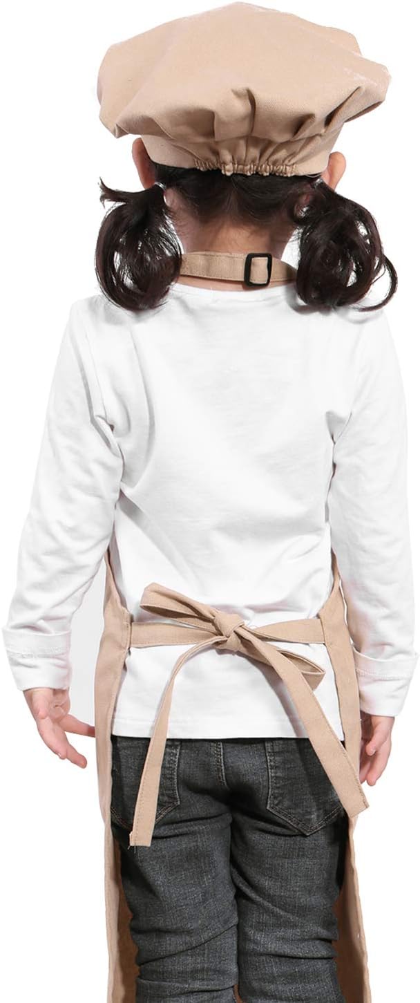 Kids Apron and Chef Hat Set-Adjustable Child Apron for Boys and Girls for Cooking Baking Khaki