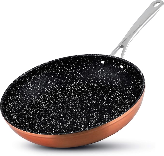 - SAFE AND HEALTHY COOKING FOR A LIFETIME: Perfectly safe for ovens and broilers (up to 450oF), this copper set is free from GenX, APEO, BPA and PFOA, allowing you to cook in the healthiest possible way. Plus, the improved surface structure with excellent corrosion and abrasion resistance properties makes this set a longer lasting and sustainable option.