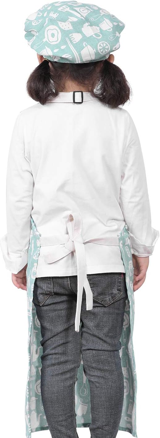 Kids Apron and Chef Hat Set-Adjustable Child Apron for Boys and Girls for Cooking Baking