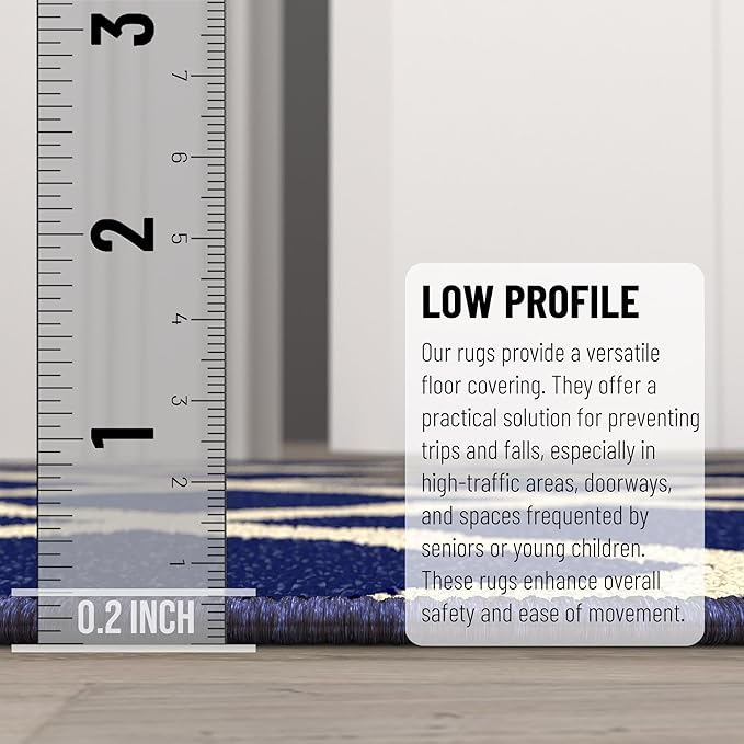 - [LOW PILE]: A low pile thickness of 0.2 inches offers ideal functionality that is perfect for busy areas, underneath furniture, and in entryways as it will not obstruct doorways