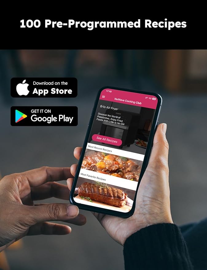 - POWERFUL CONVECTION FAN & SMOKELESS – Brio is an air fryer oven with a powerful 5-inch convection fan. It’s top mounted and promotes unrivaled cyclonic convection circulation for fast, even, extra-crispy cooking while remaining smokeless, saving you precious time in the kitchen.