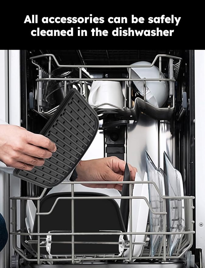 - LARGE CAPACITY FOR FAMILY SIZE - Features 4 rack positions and 7 cooking accessories, including Reversible Non-Stick Grill & Griddle, Rotisserie Basket & Skewer, Stainless-Steel Mesh Rack & Mesh Tray, Digital Temperature Probe, Drip Tray. The 15.5Qt large capacity makes cooking delicious meals for the entire family now easy. It’s the perfect combination of large capacity and function versatility.