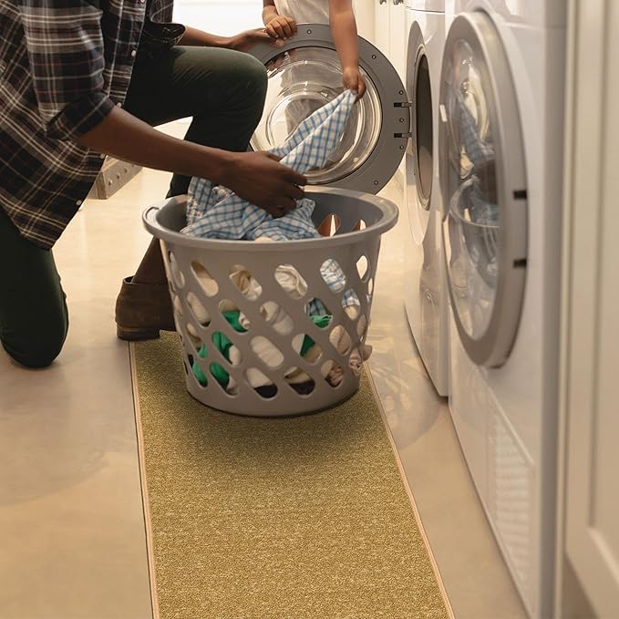 Machine Washable Modern Solid Design Non-Slip Rubberback 2x5 Traditional Runner Rug for Hallway, Kitchen, Bedroom, Entryway, 20" x 59", Beige