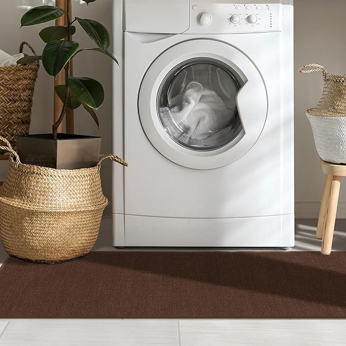 Machine Washable Modern Solid Design Non-Slip Rubberback 2x5 Traditional Runner Rug for Hallway, Kitchen, Bedroom, Entryway, 20" x 59", Brown