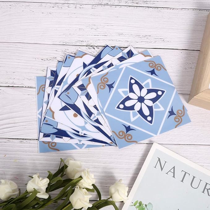 Wall Decal Non-Slip 10pcs Tile Sticker PVC Self Adhesive Art Wallpaper 10x10cm Printing Kitchen Bathroom Balcony