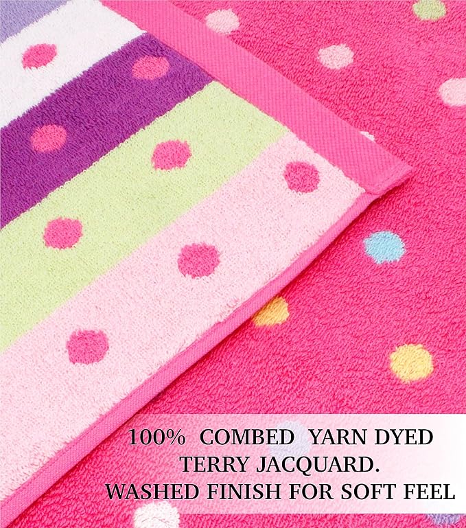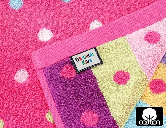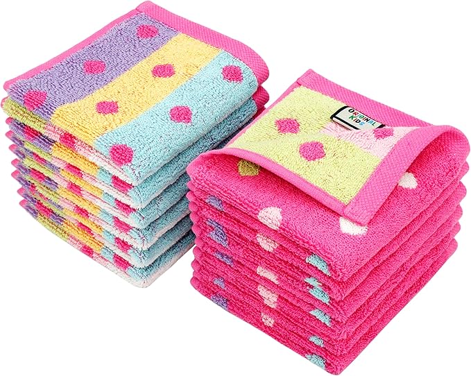 - SET CONTAINS: Twelve (12) ORIGINAL KIDS- Kids Dot Stripe Wash Cloths in Pink/Purple Multi, each measuring 12x12 Inch