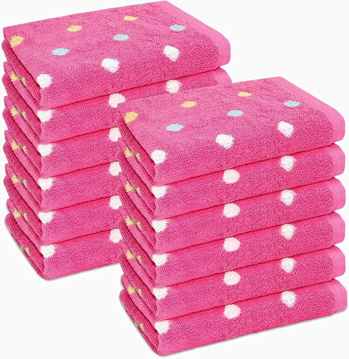 Wash Cloth - Bath Time Sugar and Spice Set of 12 Washcloths - 100% Cotton Jacquard Super Soft Colorful Absorbent Quick Dry Easy Care Face Towel Face Cloth Gift - 12x12 - Pink Multicolor