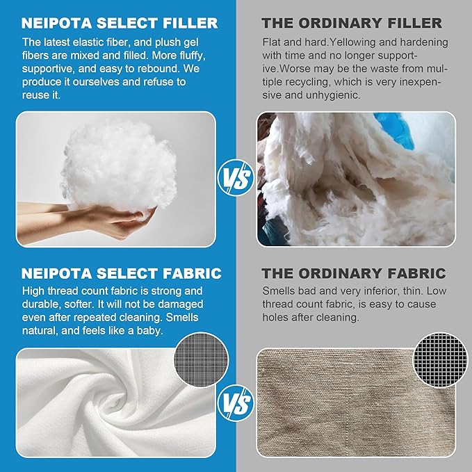 - YOU'RE WORTH HAVING: Choice by more than 4,000 hotels in the world, We are so confident that the NEIPOTA pillow is what you have been looking for. Every pillow will enjoy 120 nights money-back and 1 year to protect your pillows against manufacturer defects.