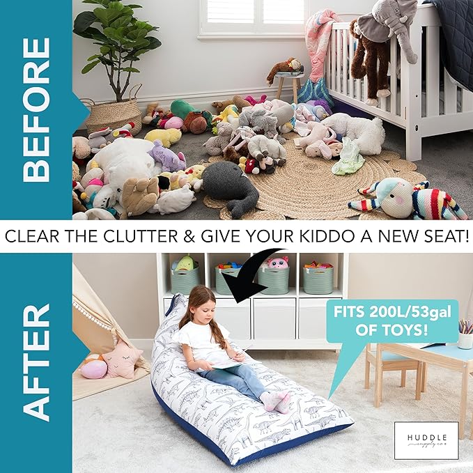 - Stylish Seat, Smart Storage: A dream come true for parents struggling with kid clutter, these Stuffie Seats serve as delightful bean bags while using stuffed animal toys, blankets, duvets, cushions as filling to make bean bag stuffed animal storage