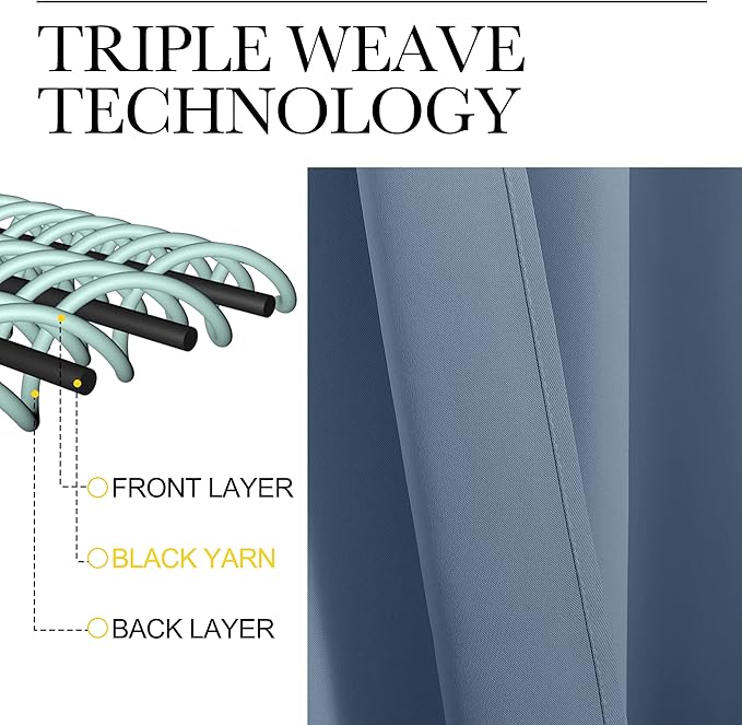 - ENERGY SMART: Triple weave blackout fabric balances room temperature by insulating against summer heat and winter chill. Protect your furniture, floors, and artwork from the ravages of the sun, the drapes will pay for themselves off over time.