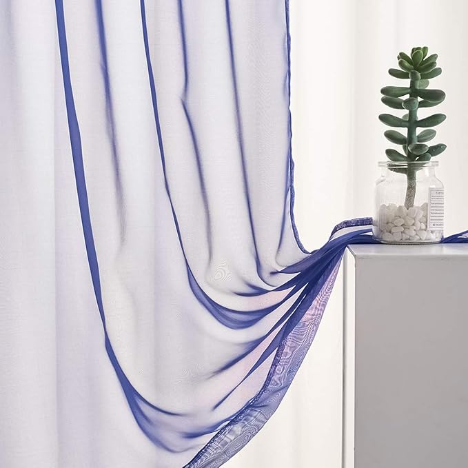 Halloween Decorations Sheer Curtains 108 Inches long Royal Blue Translucent Rod Pocket Royal Blue Sheer Curtains for Patio Doors Bedroom Living Room 9 ft 2 Panels 52X108