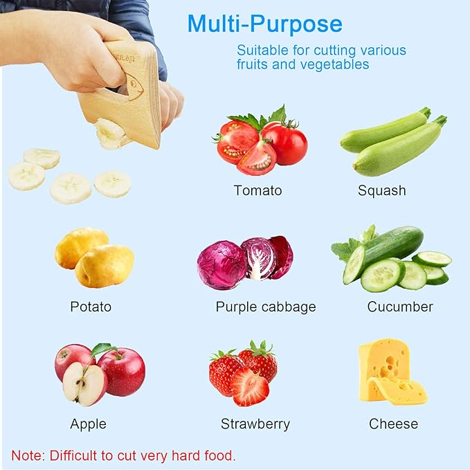 Wooden Kids Knife for Cooking and Safe Cutting Veggies Fruits, Cute Fish Shape Kids Kitchen Tools, Perfect Gifts for kids, 2-5 Years Old Applicable