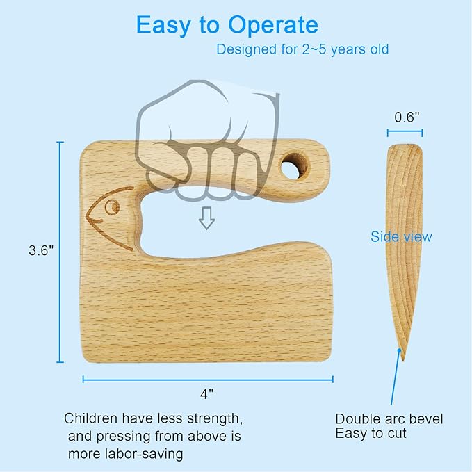- [ABILITY TRAINING] Montessori wooden knife specially designed for kids aged 2-5, can cook in the kitchen with mother since childhood to enhance cognition and hands-on ability.