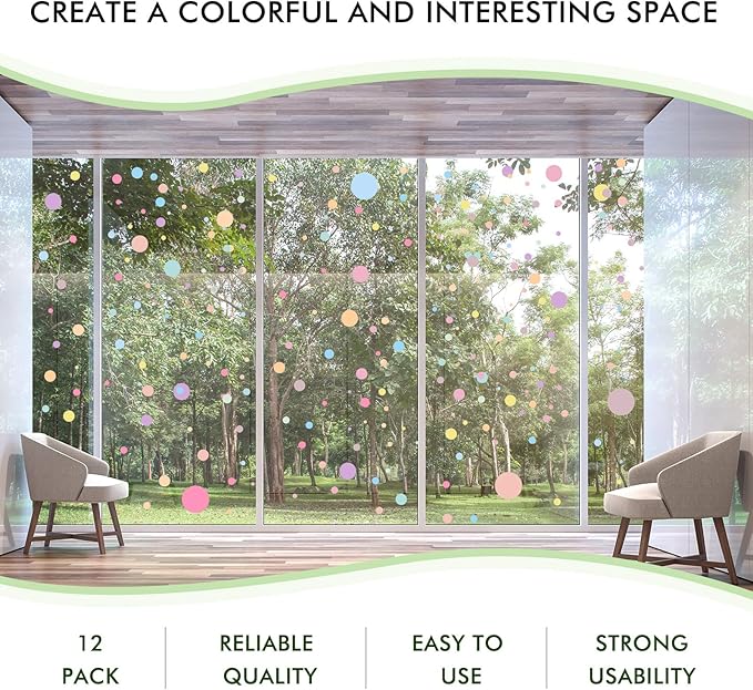 - What you'll get: package includes 12 sheets in 264 pieces polka dots wall stickers with bright color, each sheet has 22 pieces in 8 different size, enough quantity to decorate, creating a lovely room, beautiful backdrops for photo shooting