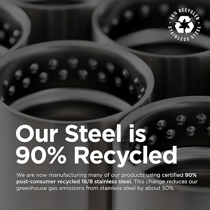 - Climate Lock vacuum insulation; Made from certified 90% post-consumer recycled 18/8 stainless steel