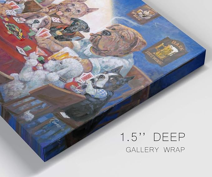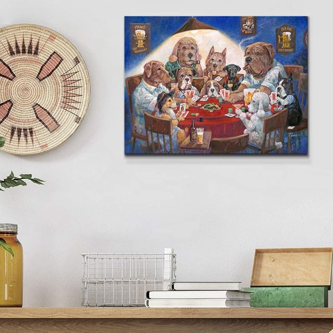 Renditions Gallery Canvas Animal Wall Art Home Paintings & Prints Poker Playing Doggos Abstract Family Festival Modern Artwork Decorations for Bedroom Office Kitchen - 18"x27" LT33