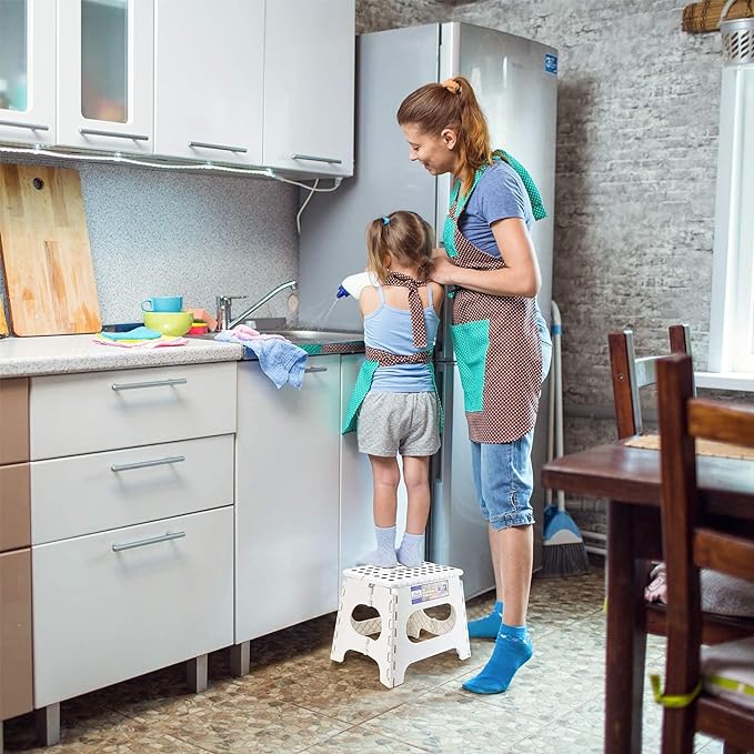 Folding Step Stool 9", Kids Step Stool, Heavy Duty Step Stools for Adults, Compact Foot Stools, Light-Weight Toddler Step Stool for Kitchen, Bathroom, Holds Up to 300 lbs (White)