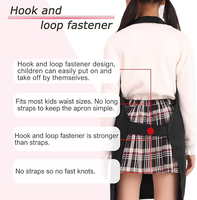 Kids Apron Chef Hat Set for Boys and Girls Adjustable Neck Strap Hook and Loop Fastener Design Waistband for Baking