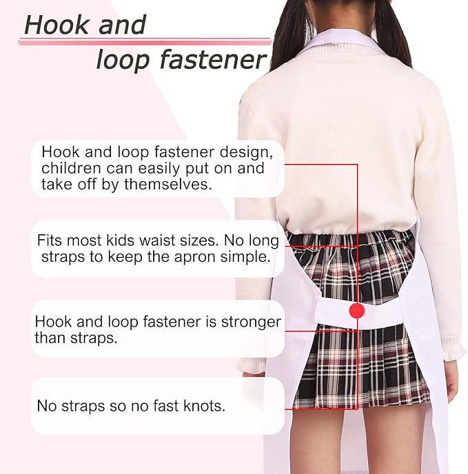 • Apron and chef hat set. The waist rope is designed with hook and loop fastener, making it easier to wear.