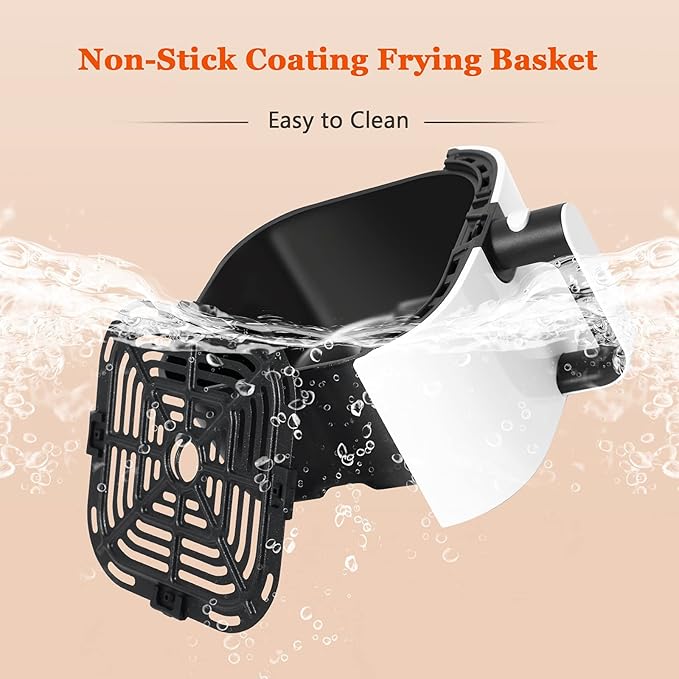 - 🍗360°RAPID AIR TECHNOLOGY: uses 360 degrees rapid air frying technology to make sure the food is cooked evenly. You can also enjoy splatter-free cooking with up to 80% less fat or oil.
