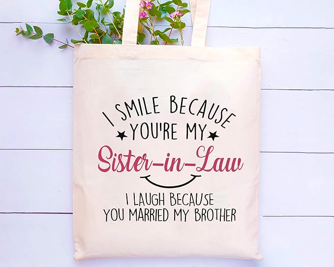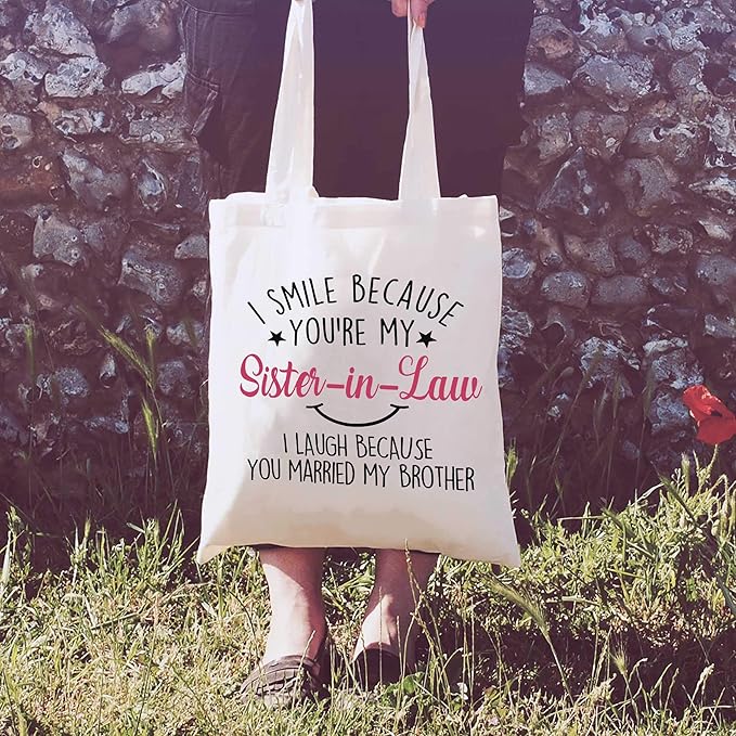 LIBIHUA I Smile Because You are My Sister in Law - Funny Sister-In-Law Gift - Unique Family Gag Gift - Birthday Christmas Novelty Present Ideas for Sister In Law – Shoulder Bag Shopping Bag Tote Bag