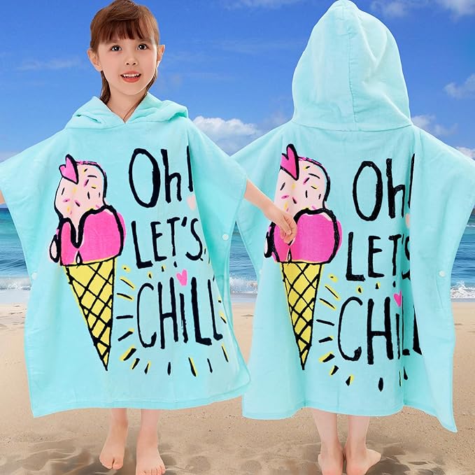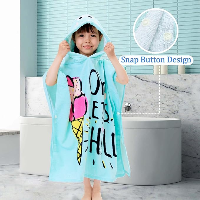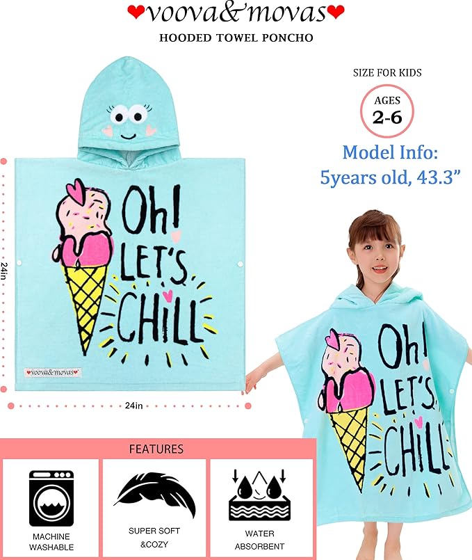 VOOVA & MOVAS Hooded Toddler Bath Towels (2-6Years) Cotton Pool Poncho for Kids, Perfect for Swimming | Surfing | Camping | Bathing | Birthday Gifts, Ice Cream Theme