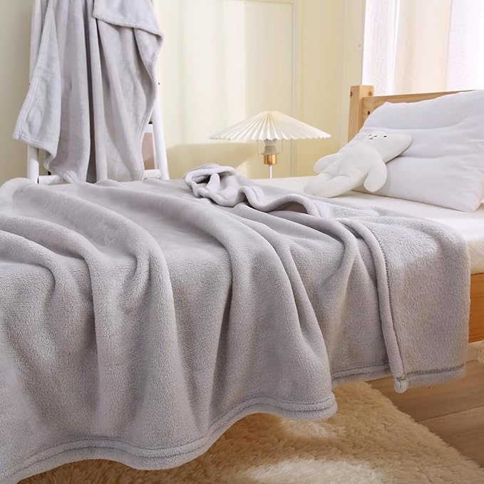 DaysU Plush Flannel Baby Blanket Super-soft Lightweight, Embroidered Fleece Baby Blanket for Unisex, Oversized Bed Throws for Kids and Children, Grey Giraffe, 50”x60”
