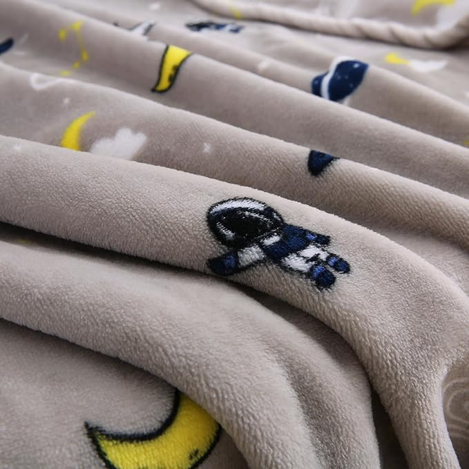DaysU Plush Flannel Baby Blanket Super-Soft Lightweight, Printed Fleece Baby Blanket for Unisex, Oversized Bed Throws for Kids and Children, Grey Space 50”x60”
