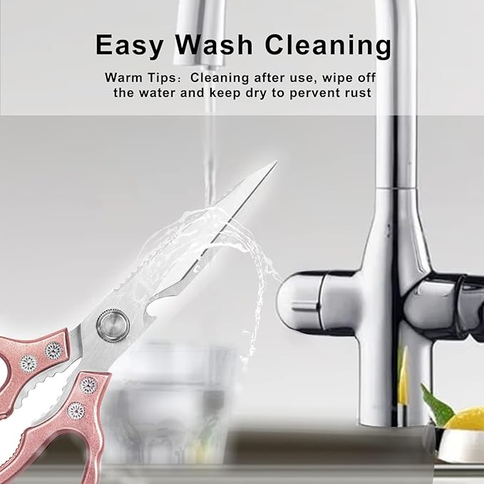 - ✂[More Functions] Sharp scissors have more functions. They can be used to scrape fish scales. Of course, they can be used to open bottles and crush walnuts or nuts. Clever scissors are also good gifts for mothers, wives, and friends! Give a gift of chef-grade scissors to any culinary enthusiast on the list; they will love the culinary scissors and they will thank you for this thoughtful and useful gift.