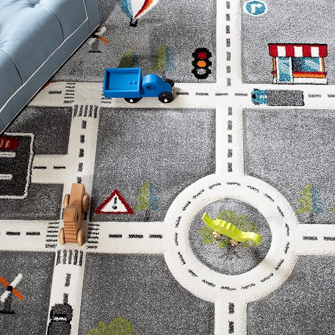 SAFAVIEH Carousel Kids Collection Accent Rug - 3'3" x 5'3", Grey & Ivory, Non-Shedding & Easy Care, Ideal for High Traffic Areas for Boys & Girls in Playroom, Nursery, Bedroom (CRK192F)