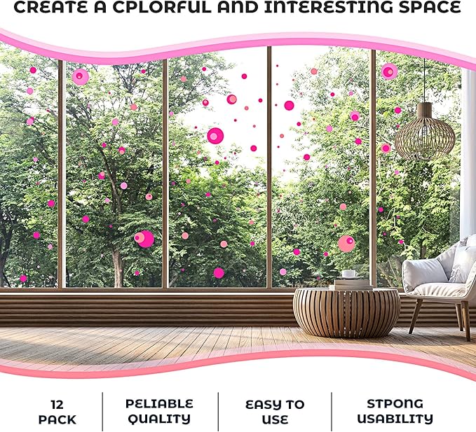 - What you'll get: package includes 12 sheets in 264 pieces polka dots wall stickers with bright color, each sheet has 22 pieces in 8 different size, enough quantity to decorate, creating a lovely room, beautiful backdrops for photo shooting